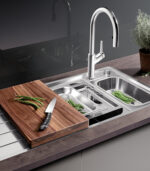 BLANCO Axial giúp bạn rửa, thái, phân loại và làm ráo thực phẩm dễ dàng mà không chiếm nhiều không gian bếp. Bồn chính rộng rãi giúp rửa nồi lớn và khay, trong khi bồn phụ dùng để rửa rau củ và giá đựng để sắp xếp thức ăn. Với phụ kiện như thớt trượt hay rổ đa năng, bạn có thể chuẩn bị nguyên liệu ngay tại bồn rửa. Hệ thống nấu ăn hơi nước BLANCO CARRIER cũng là sự kết hợp hoàn hảo cho bồn rửa Axial, giúp bạn chế biến món ăn tươi ngon một cách hiệu quả.