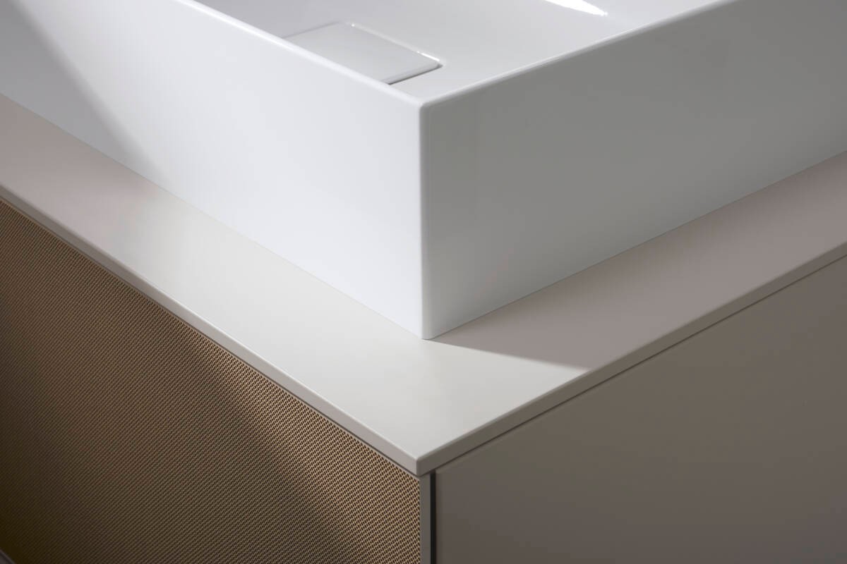 Tủ lavabo Xevolos E cũng gây ấn tượng với hệ thống PushOpen và SoftClose, bề mặt khung nhôm mỏng, và các tùy chọn vật liệu mặt trước như kính, gỗ veneer hoặc vải dệt – mang lại cảm giác vừa sang trọng vừa ấm cúng. Kích thước đa dạng từ 36 cm đến 120 cm, cùng khả năng phối hợp linh hoạt giữa chậu và tủ tạo giải pháp cá nhân hoá cho gia đình.