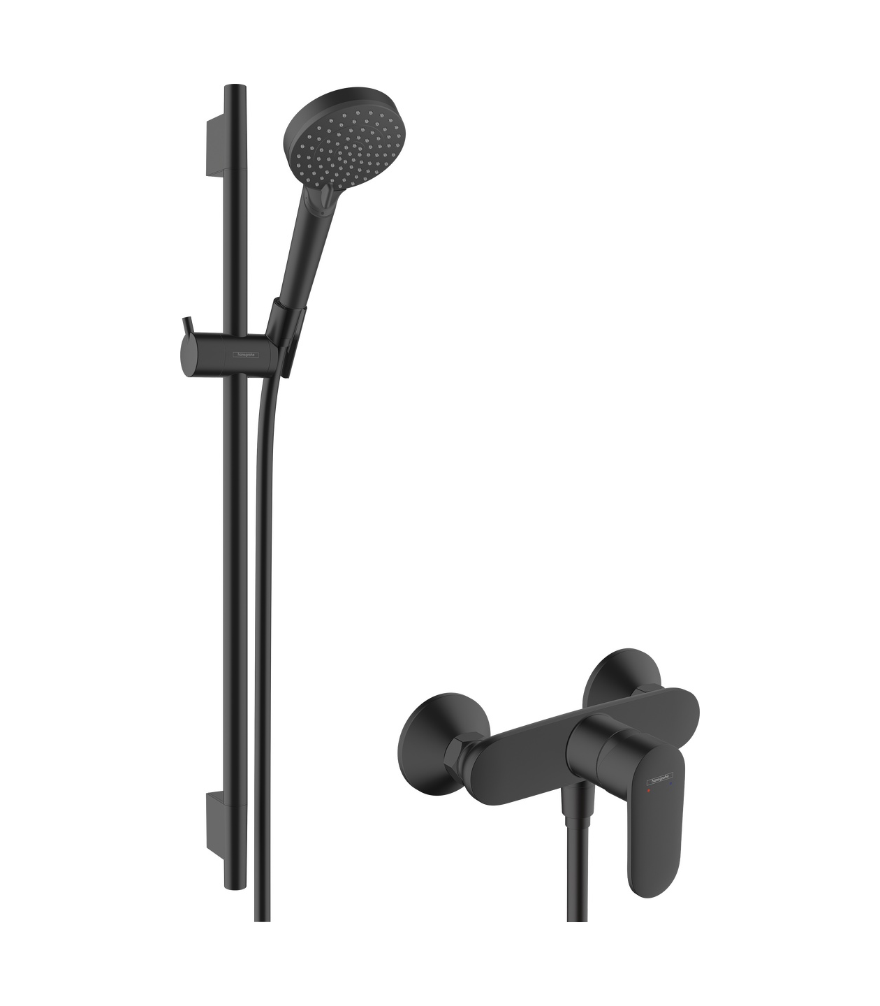 Hệ sen tắm gắn tường 100 Vario EcoSmart kèm thanh trượt S Puro 65 cm và bộ trộn tay gạt đơn Vernis Blend - HHG Trading