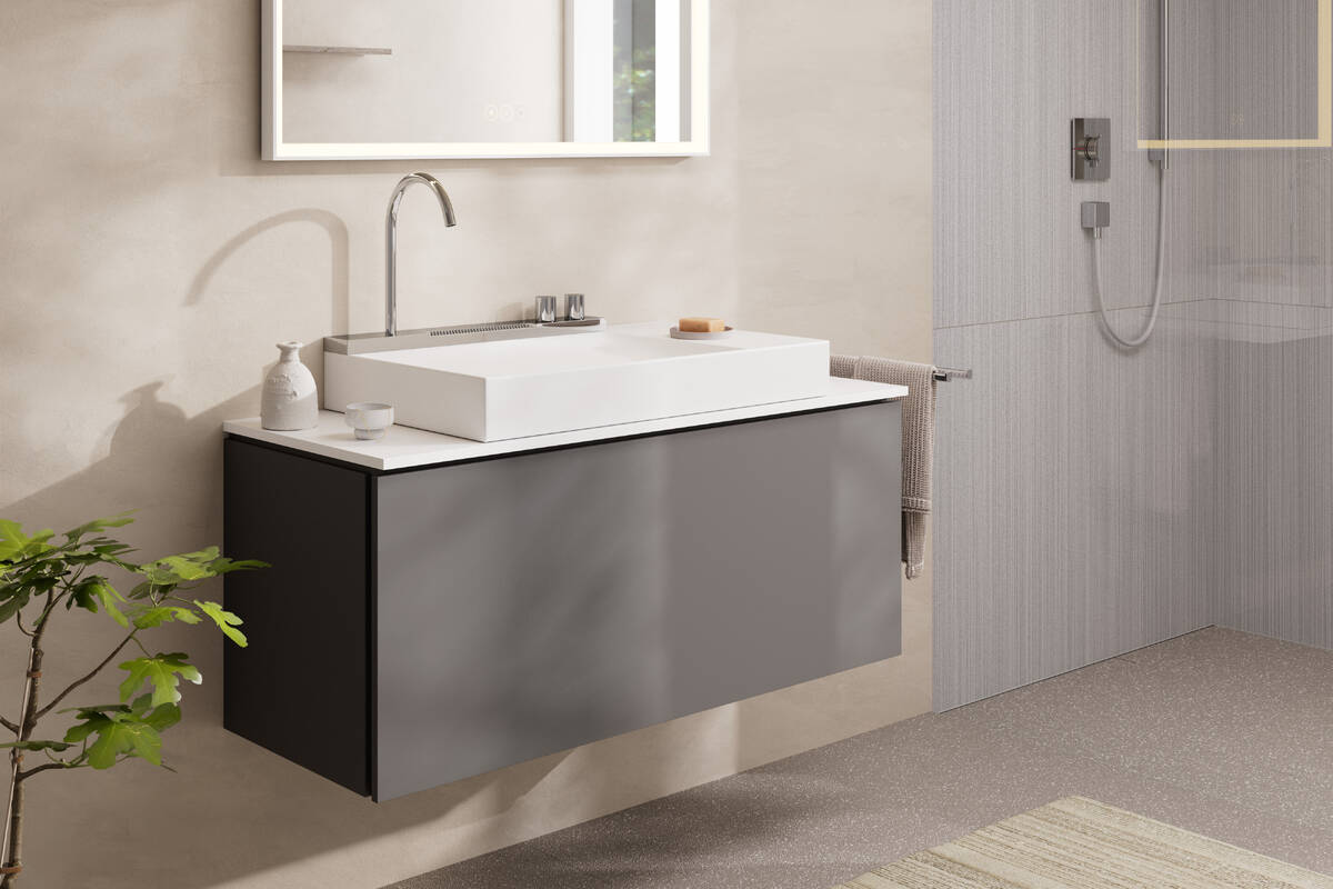 Thiết kế “không tay cầm” (handle-free), cùng công nghệ SoftClose giúp ngăn kéo đóng nhẹ nhàng và êm ái, mang lại trải nghiệm sử dụng cao cấp. Bên cạnh đó, Xilesa E còn tương thích rộng rãi với các chậu rửa của Hansgrohe như Xelu, Xevolos, và Xanuia, cho phép phối hợp linh hoạt để tạo nên không gian phòng tắm đồng bộ và hài hòa.