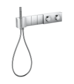 Mỗi vòi sen AXOR Edge là một tác phẩm điêu khắc từ các khối lăng trụ hình chữ nhật, được mài và đánh bóng bằng công nghệ cắt kim cương hiện đại. Với bề mặt phủ AXOR FinishPlus độc quyền , chẳng hạn như lớp mạ crôm đen bóng được thể hiện ở đây, AXOR Edge trở thành một hình ảnh phản chiếu cá nhân hơn bao giờ hết của chủ nhân. Mô-đun điều chỉnh nhiệt độ AXOR Edge Select mang đến thiết kế kiến trúc tinh tế và lớp hoàn thiện cắt kim cương cho vòi sen. Sử dụng công nghệ Select để điều khiển tối đa năm chế độ phun một cách dễ dàng và trực quan, mô-đun này là người bạn đồng hành hoàn hảo với AXOR ShowerHeaven.