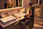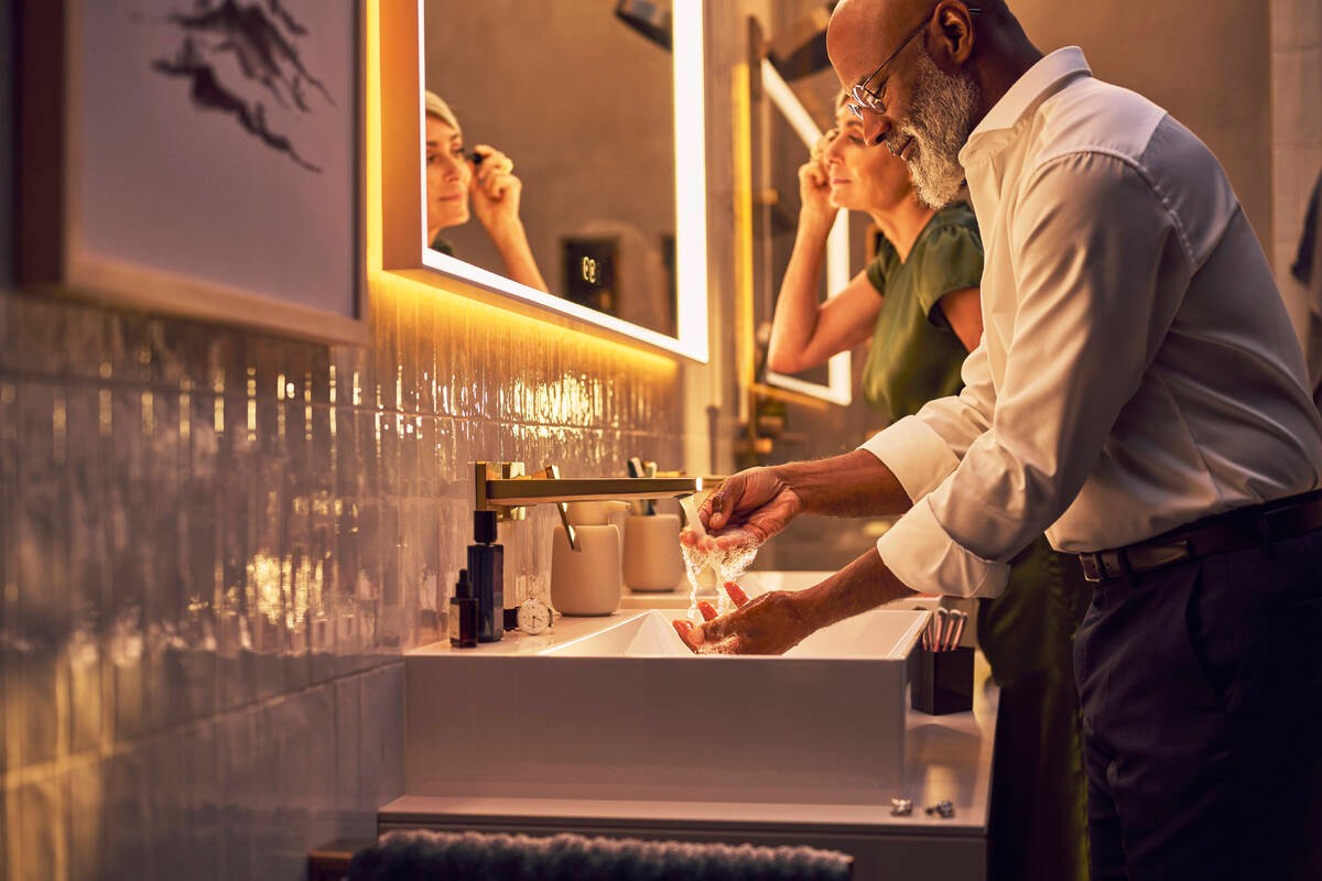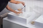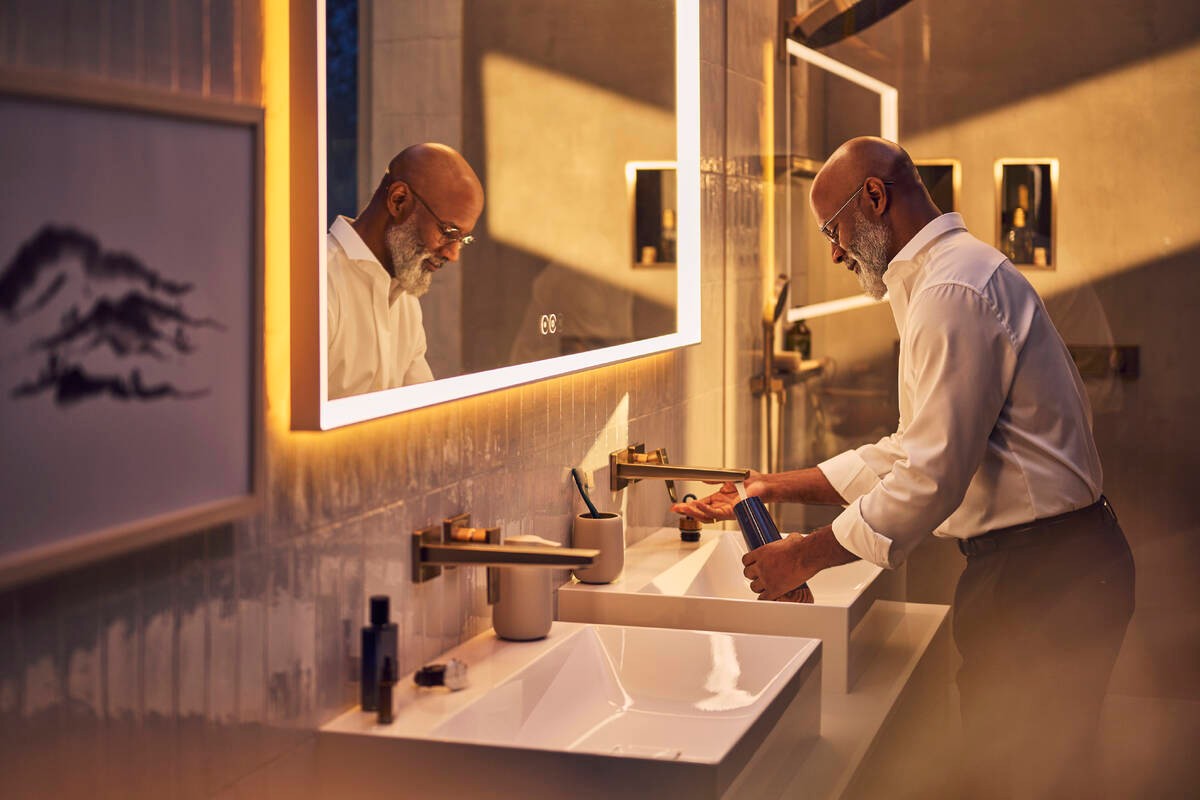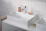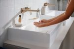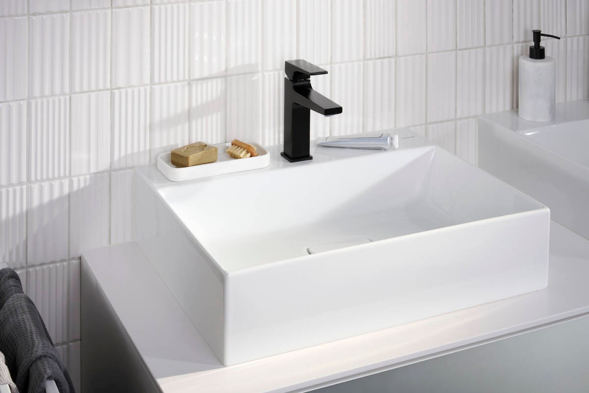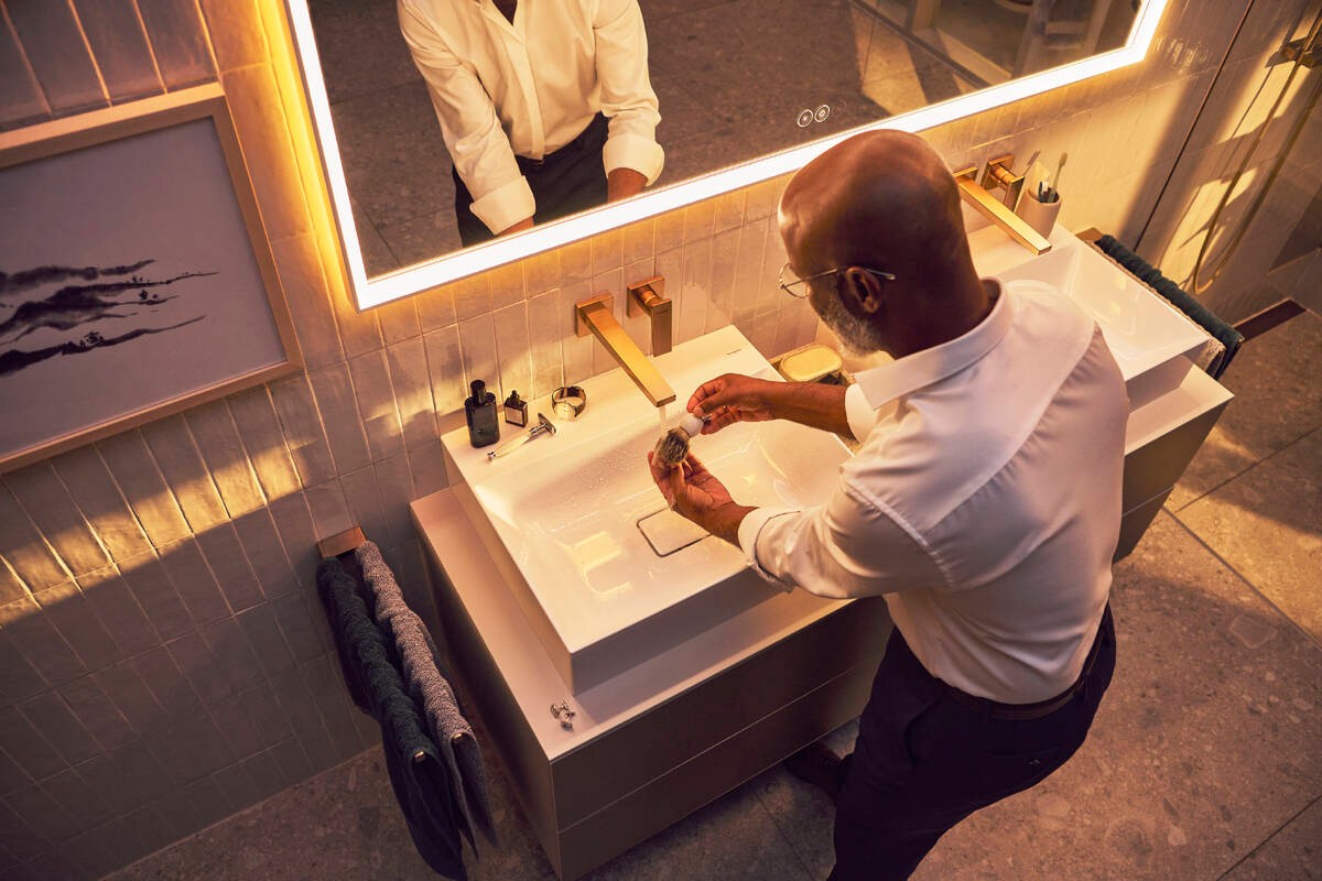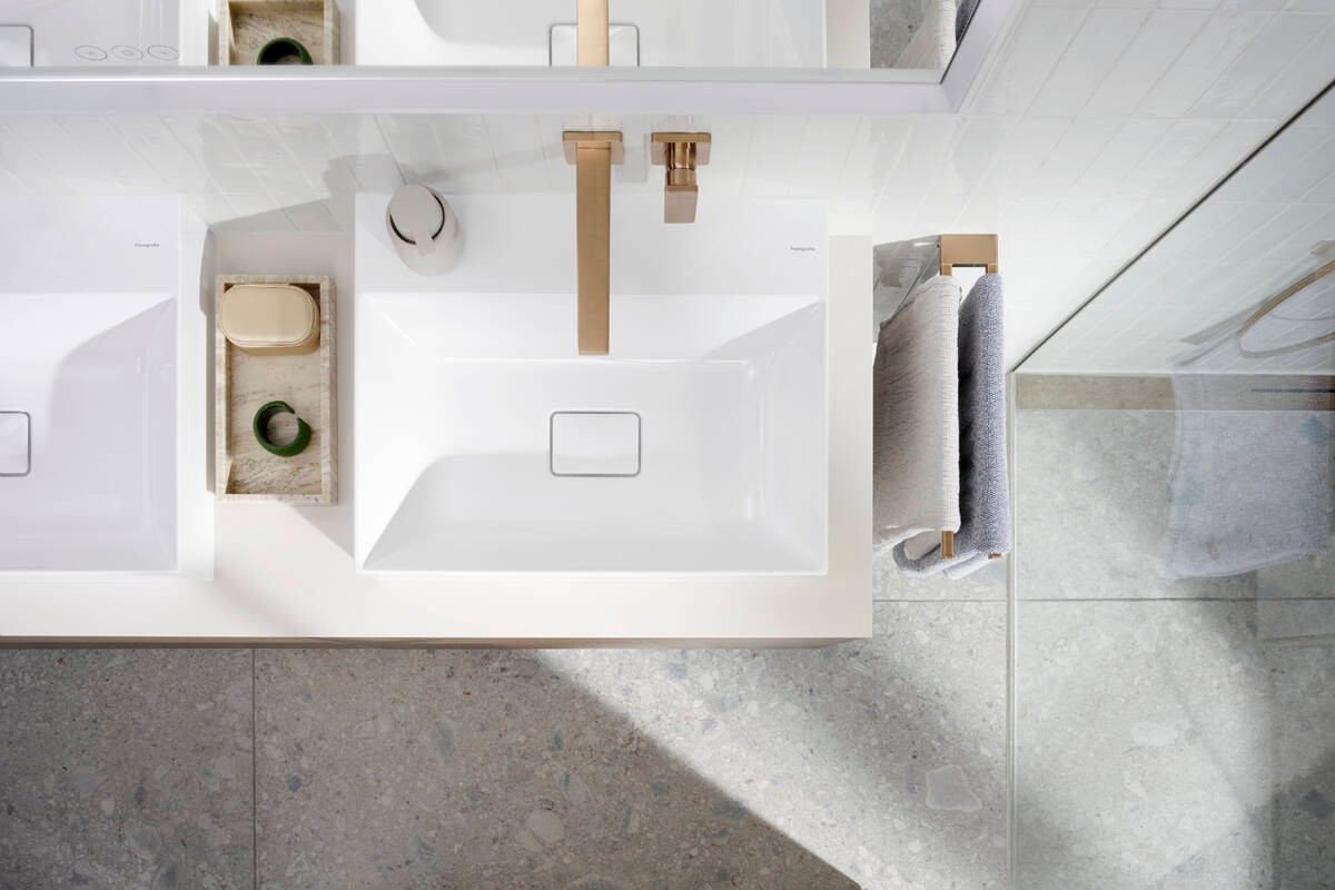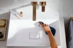 Dòng sản phẩm Hansgrohe Xevolos E khơi dậy cảm hứng cho không gian “wash-place” với thiết kế mang hơi thở kiến trúc hiện đại: chậu lavabo và tủ được chế tác từ sứ vệ sinh bền chắc, phủ lớp men chống bám bẩn SmartClean và loại bỏ lỗ thoát tràn để tạo vẻ ngoài liền mạch.