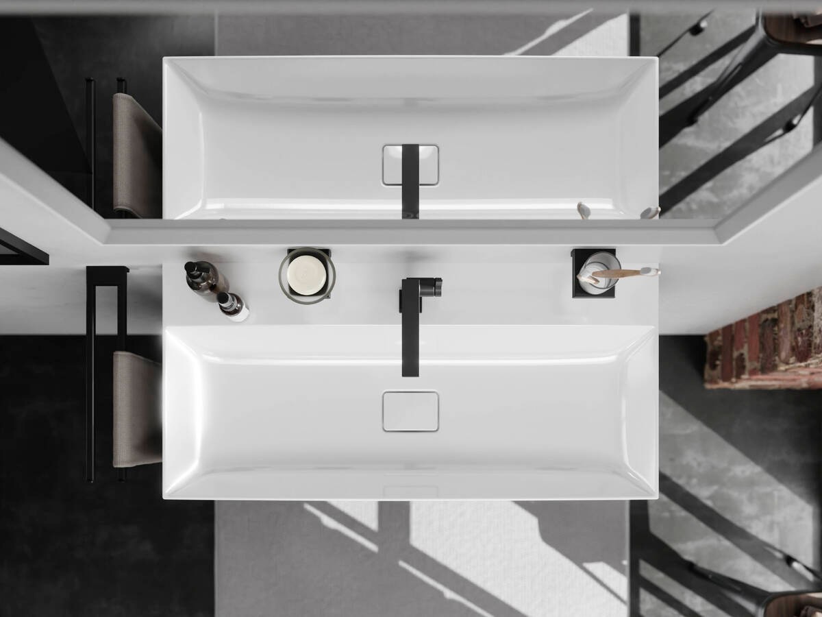 Tủ lavabo Xevolos E cũng gây ấn tượng với hệ thống PushOpen và SoftClose, bề mặt khung nhôm mỏng, và các tùy chọn vật liệu mặt trước như kính, gỗ veneer hoặc vải dệt – mang lại cảm giác vừa sang trọng vừa ấm cúng. Kích thước đa dạng từ 36 cm đến 120 cm, cùng khả năng phối hợp linh hoạt giữa chậu và tủ tạo giải pháp cá nhân hoá cho gia đình.
