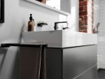 Dòng sản phẩm Hansgrohe Xevolos E khơi dậy cảm hứng cho không gian “wash-place” với thiết kế mang hơi thở kiến trúc hiện đại: chậu lavabo và tủ được chế tác từ sứ vệ sinh bền chắc, phủ lớp men chống bám bẩn SmartClean và loại bỏ lỗ thoát tràn để tạo vẻ ngoài liền mạch.