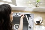 Bồn rửa đặt trước cửa sổ mở vào trong? Giải pháp hoàn hảo: vòi bếp có thể tháo khỏi giá đỡ và đặt trực tiếp trên chậu, tạo thêm không gian thoáng và thuận tiện